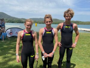 Auch am zweiten Tag resultierten gute Resultate über 7.5 km. Emma Fredersdorf schwamm mutig vorne mit und wurde 8, was ihr Selbstvertrauen geben sollte. Im gleichen Rennen wurde Katharina Hibbeln 14. und Annina Bruhin 17.