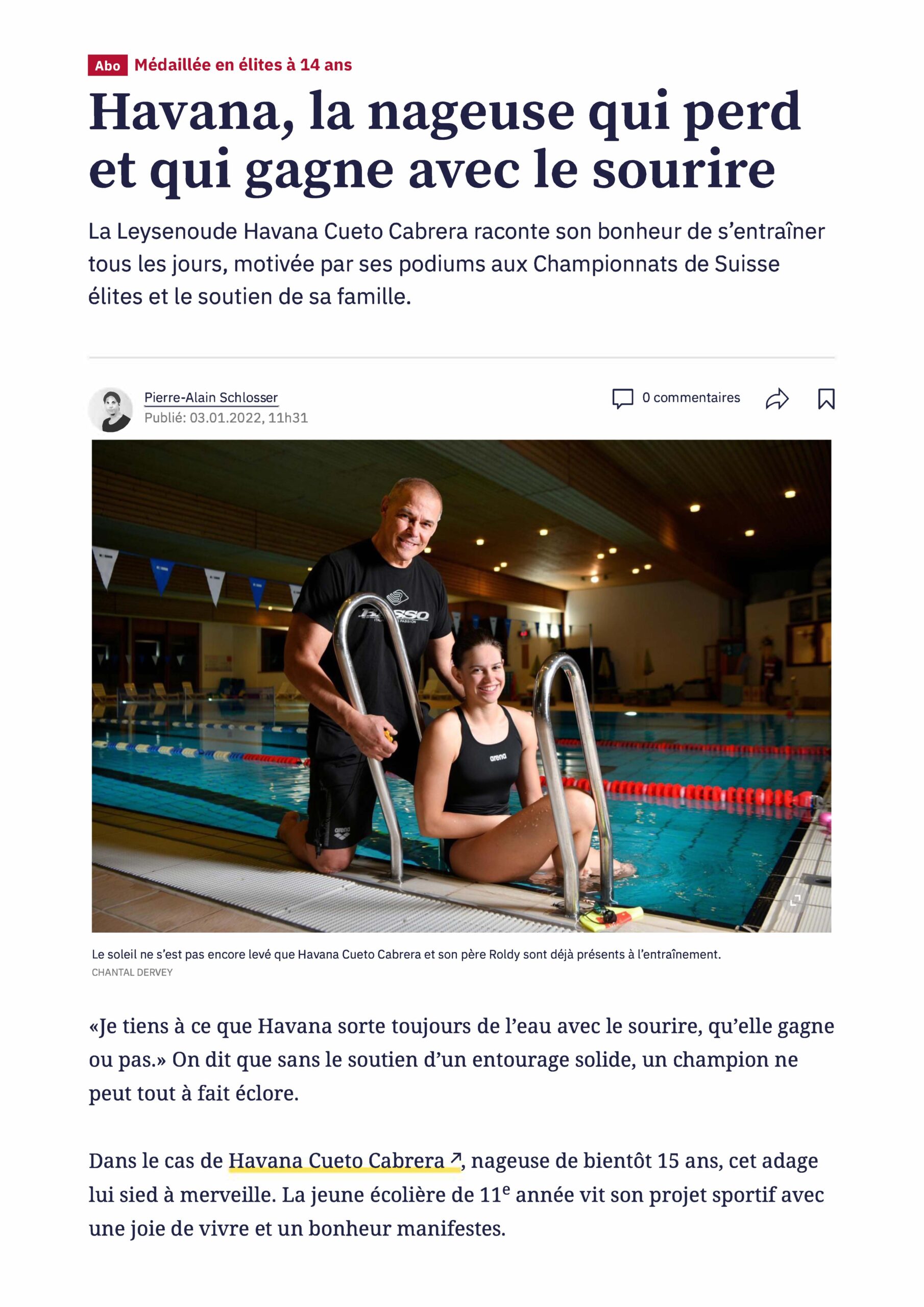 Startseite / Bericht über Havana Cueto Cabrera bei «24 heures»