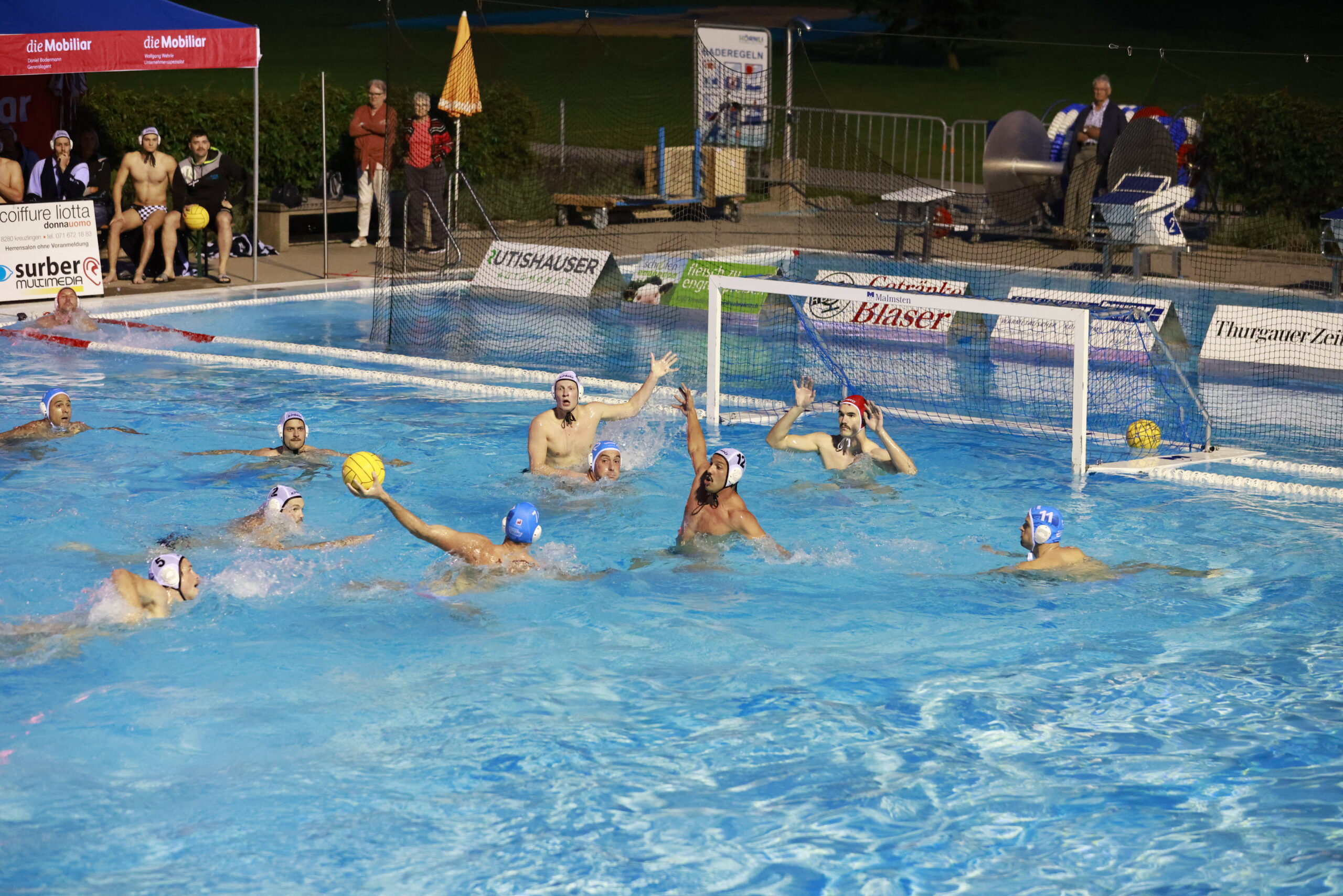 Noch dramatischer und umkämpfter verliefen die Partien zwischen Qualifikationssieger Lugano NPS und dem SC Kreuzlingen. Dem SC Kreuzlingen gelang in Spiel 1 mit einem 8:7 Sieg das überraschende Break in Lugano. In einem hart geführten zweiten Spiel in Kreuzlingen gelang Lugano mit dem gleichen Resultat jedoch sogleich die Revanche. Doch der SC Kreuzlingen wusste in Spiel 3, wiederum im Lido in Lugano, erneut zu kontern und setzte sich abermals mit einem Tor Differenz (7:6) durch. So hatten sie im vierten Spiel im Kreuzlinger Schwimmbad Hörnli einen Matchball in Händen. Doch Lugano spielte seine ganze Erfahrung aus und führte bis zu Beginn des letzten Viertels, ehe Kreuzlingen der Ausgleich und kurz darauf die erstmalige Führung gelangen. Zwar konnte Lugano noch auf ein Tor verkürzen, doch letztlich setzte sich Kreuzlingens deutlich jüngeres Team durch und sicherte sich mit dem dritten Sieg (10:9) den Schweizermeistertitel der NLA.