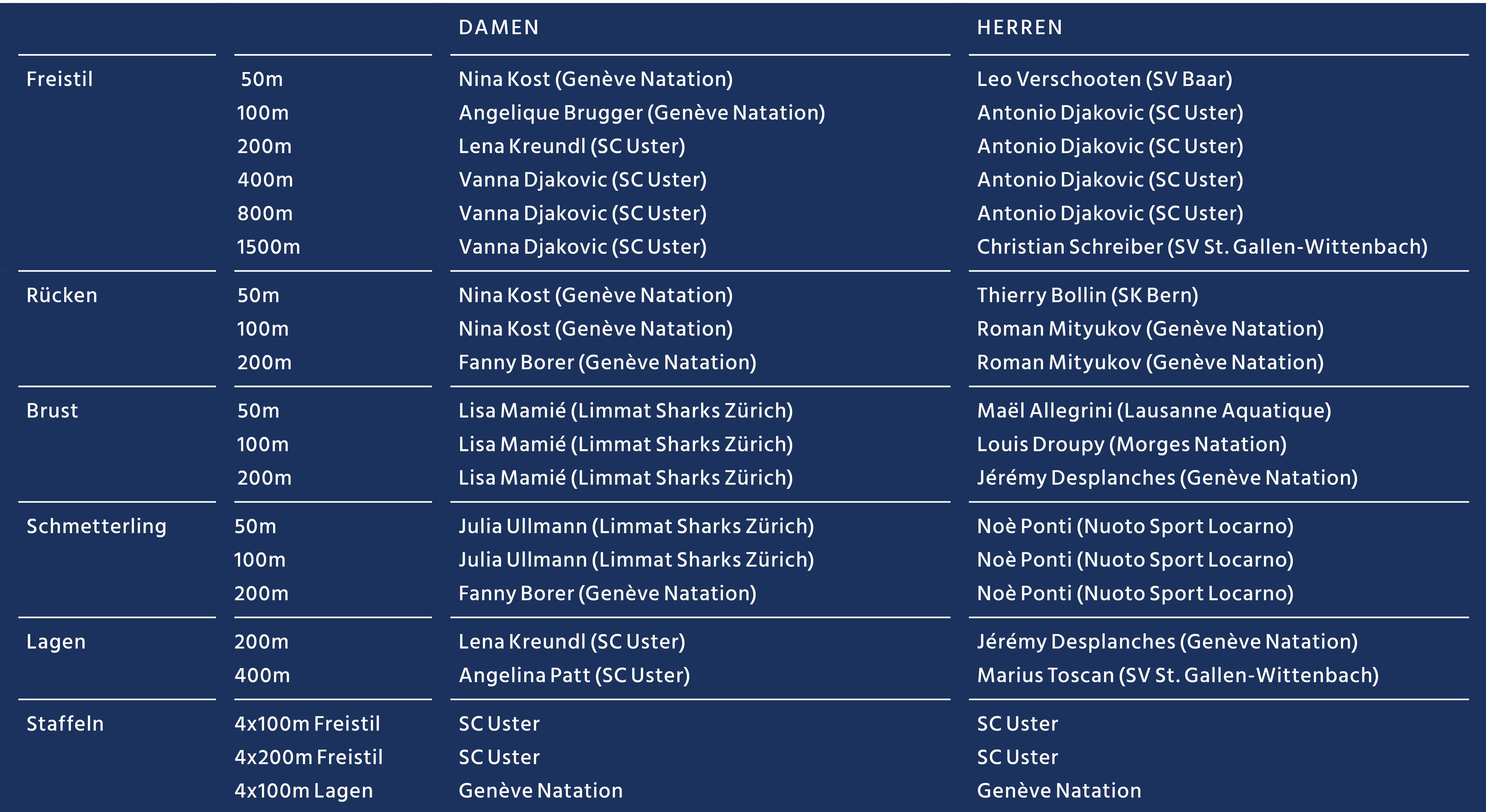 Die kompletten Resultatlisten können unter Swimranking.net abgerufen werden.