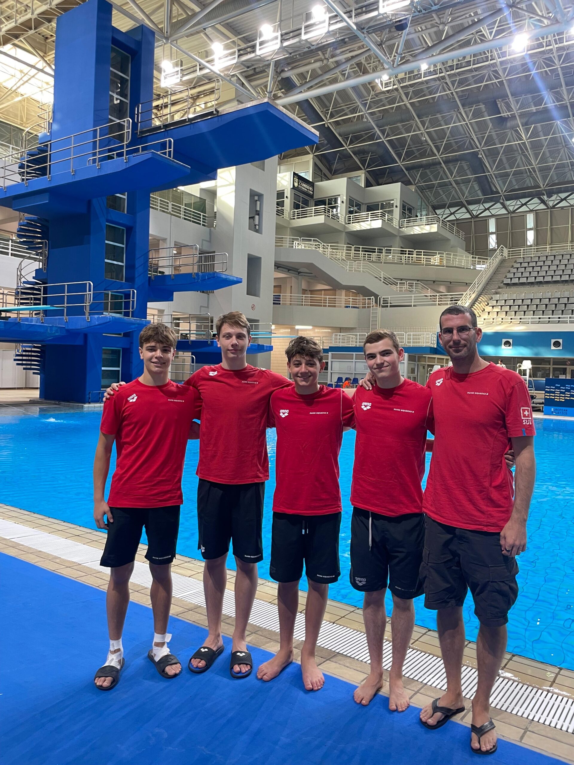 Les Championnats d'Europe juniors de plongeon auront lieu à Athènes du 23 au 29 juin. Swiss Aquatics Diving s'est rendu vendredi dans la capitale grecque avec une petite équipe performante. La délégation se compose des quatre plongeurs Antoine Chevnine (Lausanne Aquatique), Erik Passerone (Verein Zürcher Wasserspringer), Aurélien Petoud (Lausanne Aquatique) et Kevin Sigona (Lausanne Aquatique), ainsi que l'entraîneur Alexis Coquet et la juge Kathy Brunner. Avant le début de la compétition, les athlètes peuvent encore effectuer quelques sauts d'entraînement sur place et se familiariser avec les installations.