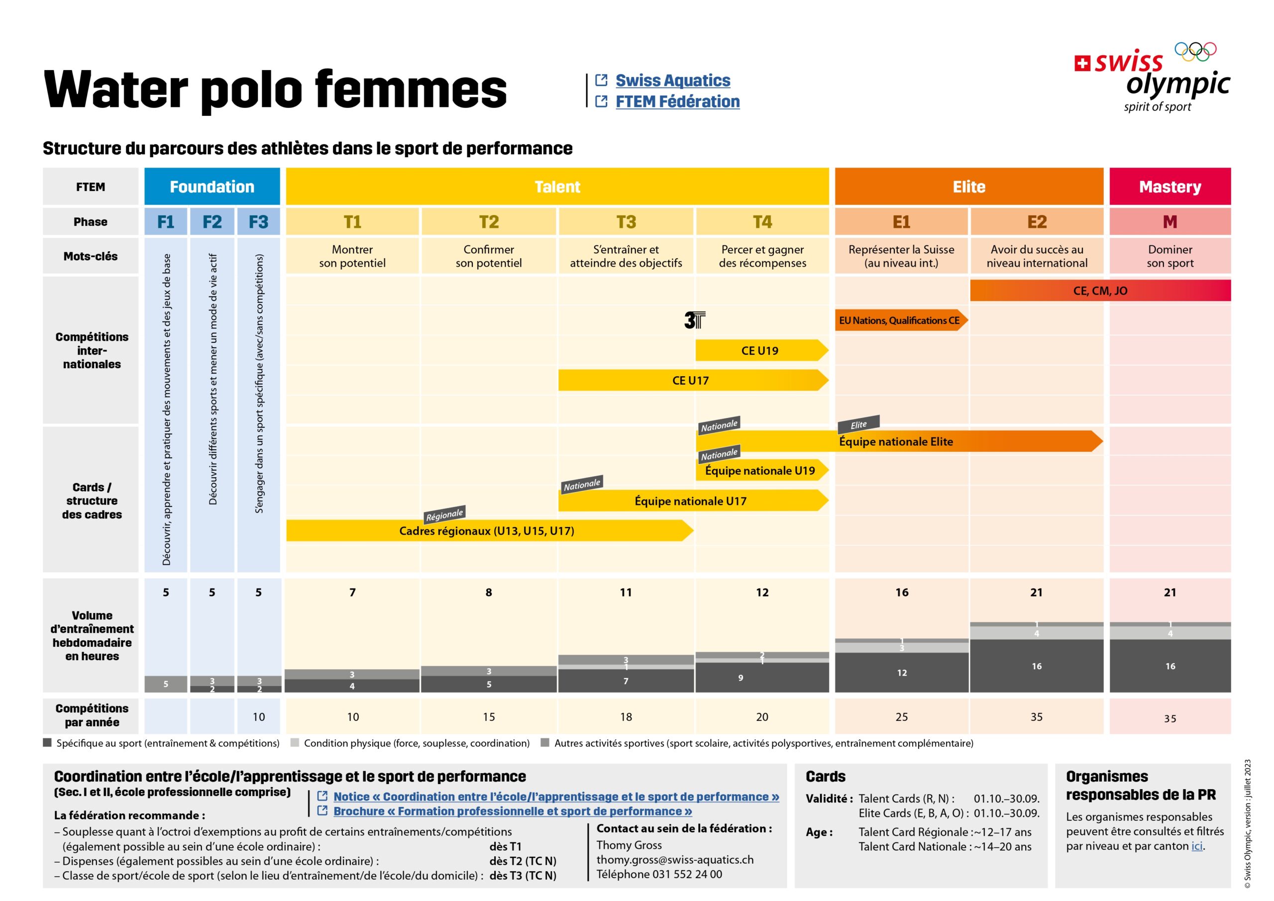 La brochure pour le concept cadre pour le développement du sport et des athlètes – en bref FTEM Swiss Aquatics – dans les quatre branches sportives olympiques de la natation est basé sur FTEM Suisse développé par l'Office fédéral du sport (OFSPO) et Swiss Olympic qui représente la base et un langage commun pour la promotion du sport et des athlètes pour toute personne engagée dans le sport.