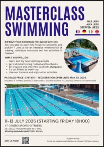 Pour tou·te·s les nageur·euse·s qui souhaitent obtenir de précieux conseils avant cette date, par exemple pour la préparation des Championnats du monde Masters à Singapour, une Masterclass organisée et dirigée par Nils, Alex et Steffen Liess aura lieu du 11 au 13 juillet à Tenero. Vous pouvez vous inscrire ici.