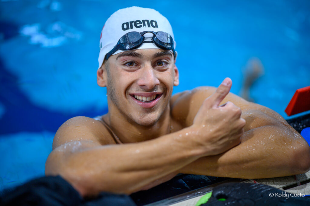Flavio Bucca of Switzerland celebrates after finishing second in the Men's 200m Backstroke Final and qaulifying for the European Championships during the Swiss Swimming Championships (50m) in Uster, Switzerland, Saturday, April 6, 2024. (Photo by Patrick B. Kraemer / MAGICPBK)