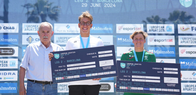 Paul Nie­der­ber­ger gewinnt am Euro­pean Aqua­tics Open Water Cup in Bar­ce­lo­na die Silbermedaille