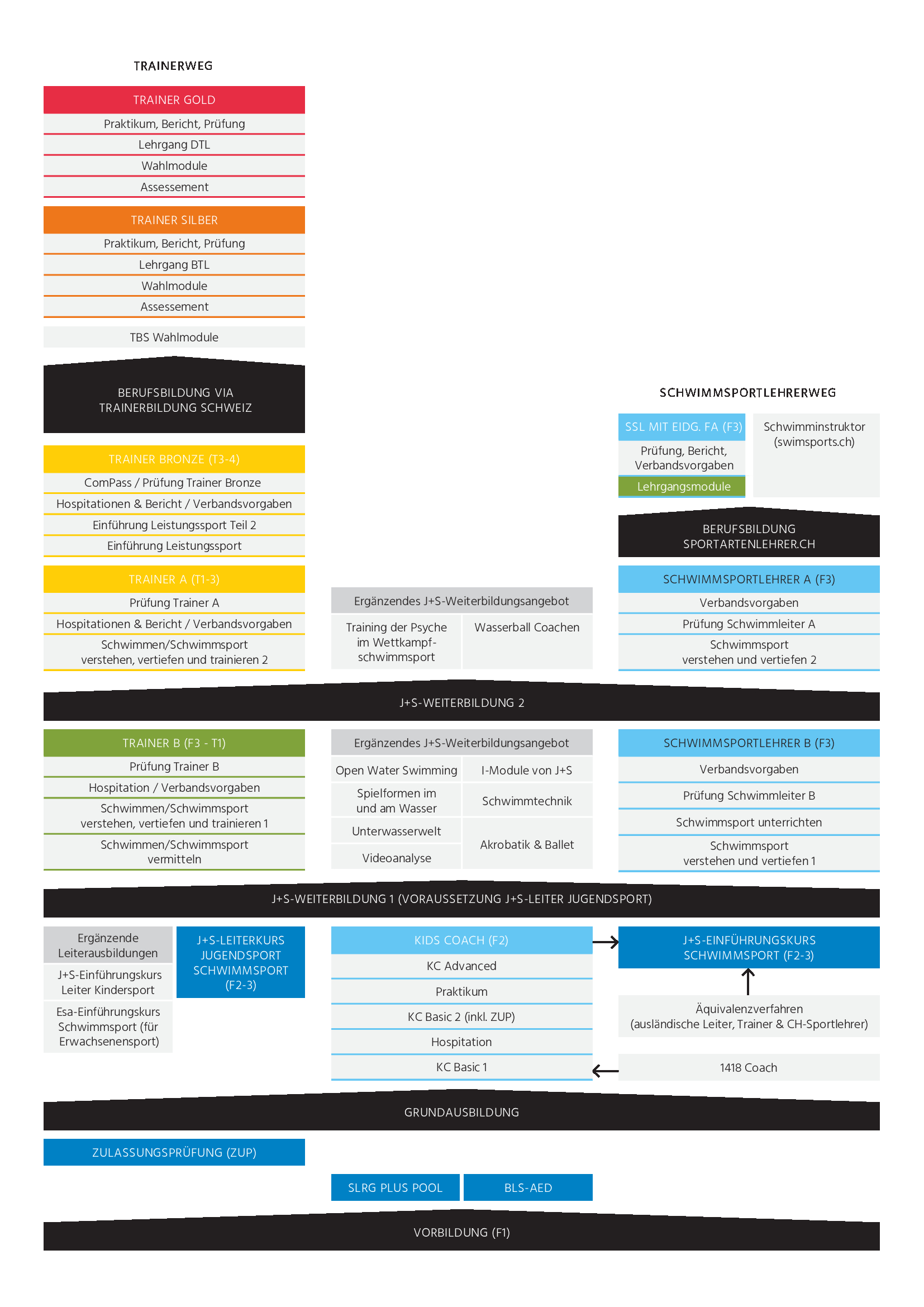 Swiss Aquatics bietet nachstehende Ausbildungswege für folgende Zielgruppen an: