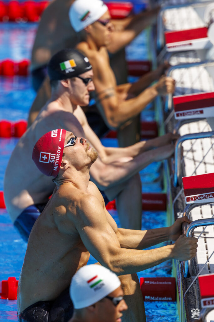 Über die 200m Rücken standen Roman Mityukov und Flavio Bucca gemeinsam im letzten Vorlauf auf den Startblöcken. Roman Mityukov, der an den letzten beiden Weltmeisterschaften sich jeweils eine Medaille sichern konnte, schwamm ein kontrolliertes Rennen und beendete den Vorlauf in 1:57.19 als Gesamterster. Auch er nimmt diese EM als Trainingswettkampf auf dem Weg nach Paris als Standortbestimmung mit, ohne spezifische Vorbereitungen. Dafür war es eine starke Zeit, die er in der Hitze von Belgrad aufstellte. Dies bestätigte er auch selbst nach dem Rennen. Er sei zufrieden mit seiner Leistung. Er habe das umsetzen können, was der Trainer ihm vor dem Lauf mit auf den Weg gegeben habe. Dass unter diesen Umständen, in dieser intensiven Trainingsphase eine tiefe 57er Zeit resultiere, würde ihn positiv stimmen. Der junge Genfer konnte bereits im Vorlauf aus dem Training heraus überzeugen, was einmal mehr seine absolute Weltklasse unterstreicht. Ein Achtungserfolg durfte auch Flavio Bucca feiern. Bei seiner ersten EM auf Elitestufe schaffte der 19-jährige Ostschweizer sogleich den Einzug in den Halbfinal. Er beendete seinen Vorlauf in 2:01.38 und darf heute Abend neben Roman Mityukov erneut über die 200m Rücken an den Start gehen. Nach dem Erfolg zeigte er sich erfreut, werde nun aber das Rennen erstmals mit seinem Coach analysieren und schauen, was er verbessern kann. Die ersten 150m seien sehr gut gewesen – er war unter seiner persönlichen Bestzeit – habe dann aber viel zu viel Zeit und noch zwei Plätze verloren. Dies müsse er nun mit seinem Coach analysieren und allenfalls an einigen Stellschrauben drehen, damit dies heute Abend nicht mehr passiere. Der Halbfinal der beiden Schweizer war abends um 19:24 Uhr angesetzt.
