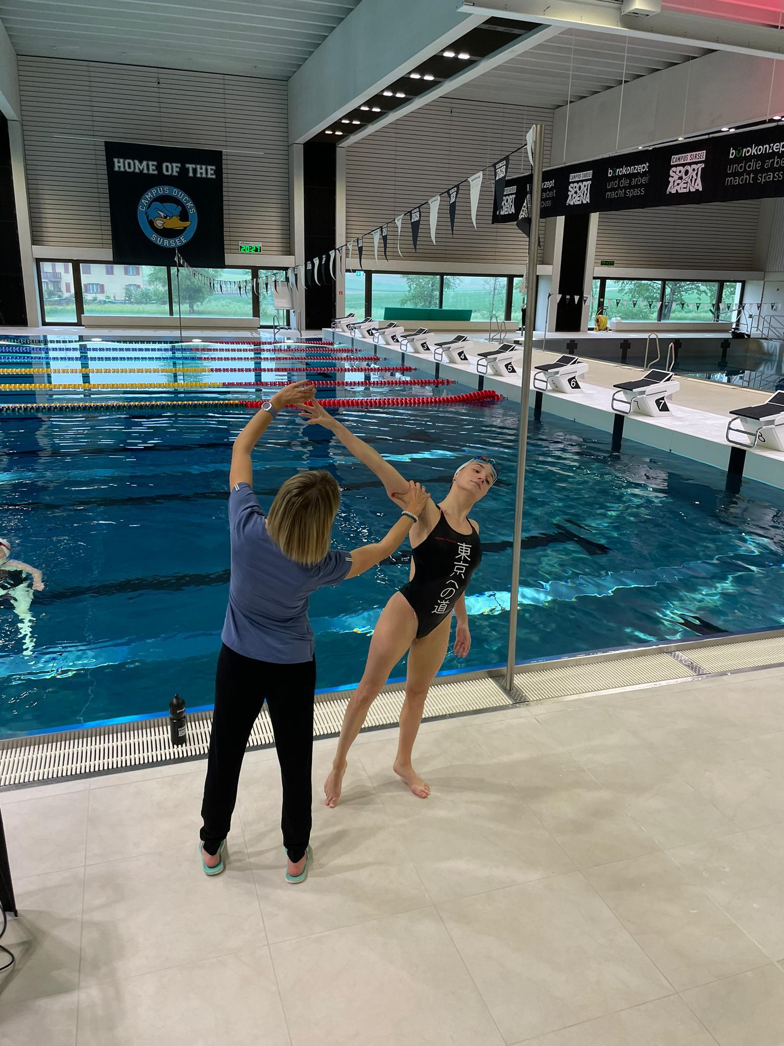Durch die Unterstützung von Andrea Fuentes >, Reem Abdalazem > und Anastasia Ermakova > konnte das Schweizer Olympia Duett wertvolle Tipps, Ratschläge und Inputs erhalten und so von dem Expertenwissen bestmöglich profitieren.